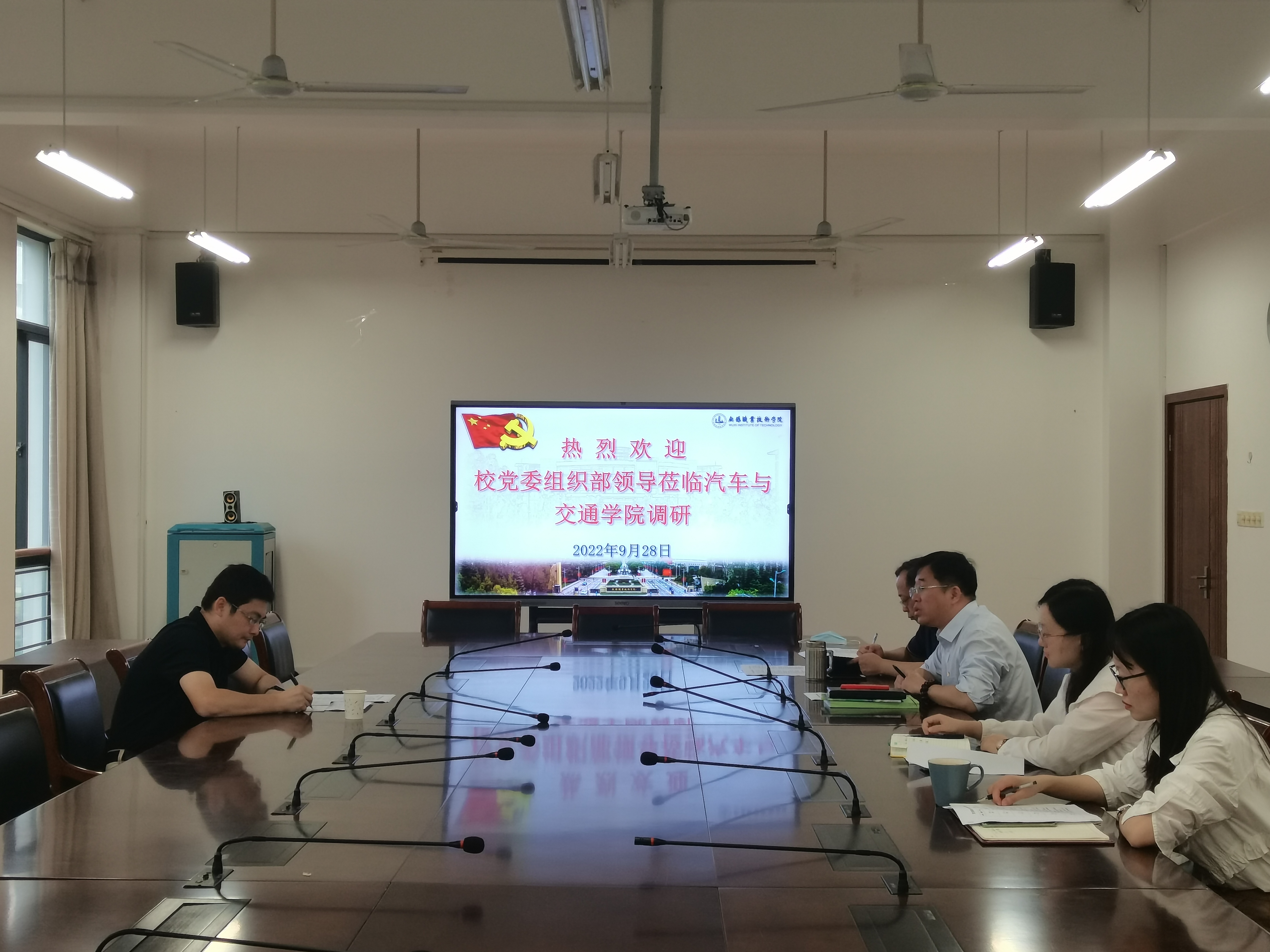 为更好了解基层党建工作具体情况,无锡职业技术学院党委委员、组织部长朱翔于9月28日上午走访汽车与交通学院进行调研。汽车与交通学院党总支书记邹晔、党总支副书记丁正荣,组织员高娜娜、学生党支部书记林姣姣、教工党支部组织委员陈珣参加了会议。