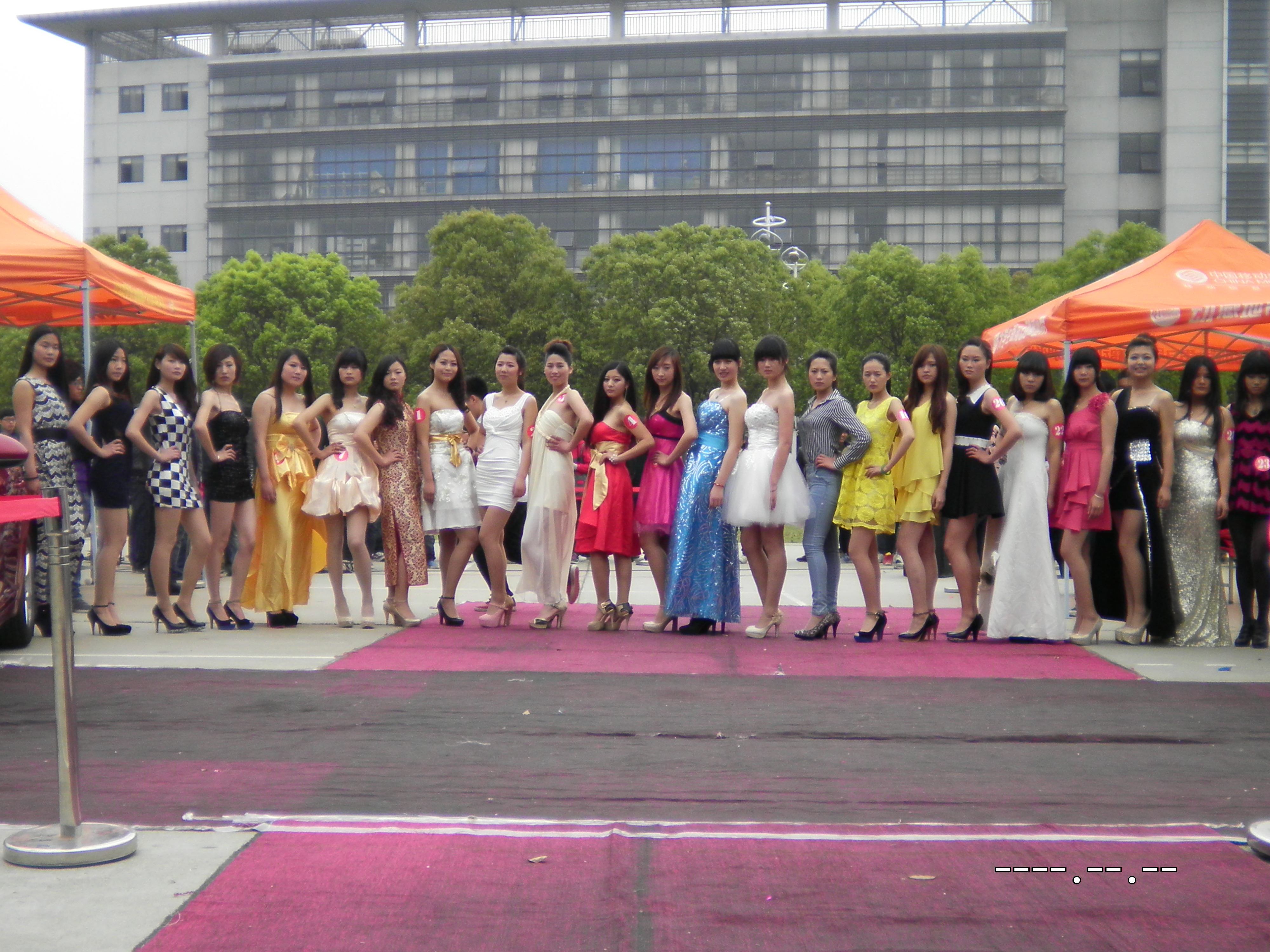 4月23日半决赛当天,我院篮球场东侧人山人海。动感的音乐,喧闹的人群,飘扬的彩旗,组成一派欢腾的景象。比赛还未开始,赛场周围早已围满了急切等待的观众。29位青春洋溢的参赛选手身着盛装,成为校园里一道亮丽的风景线,吸引着过往同学的目光。