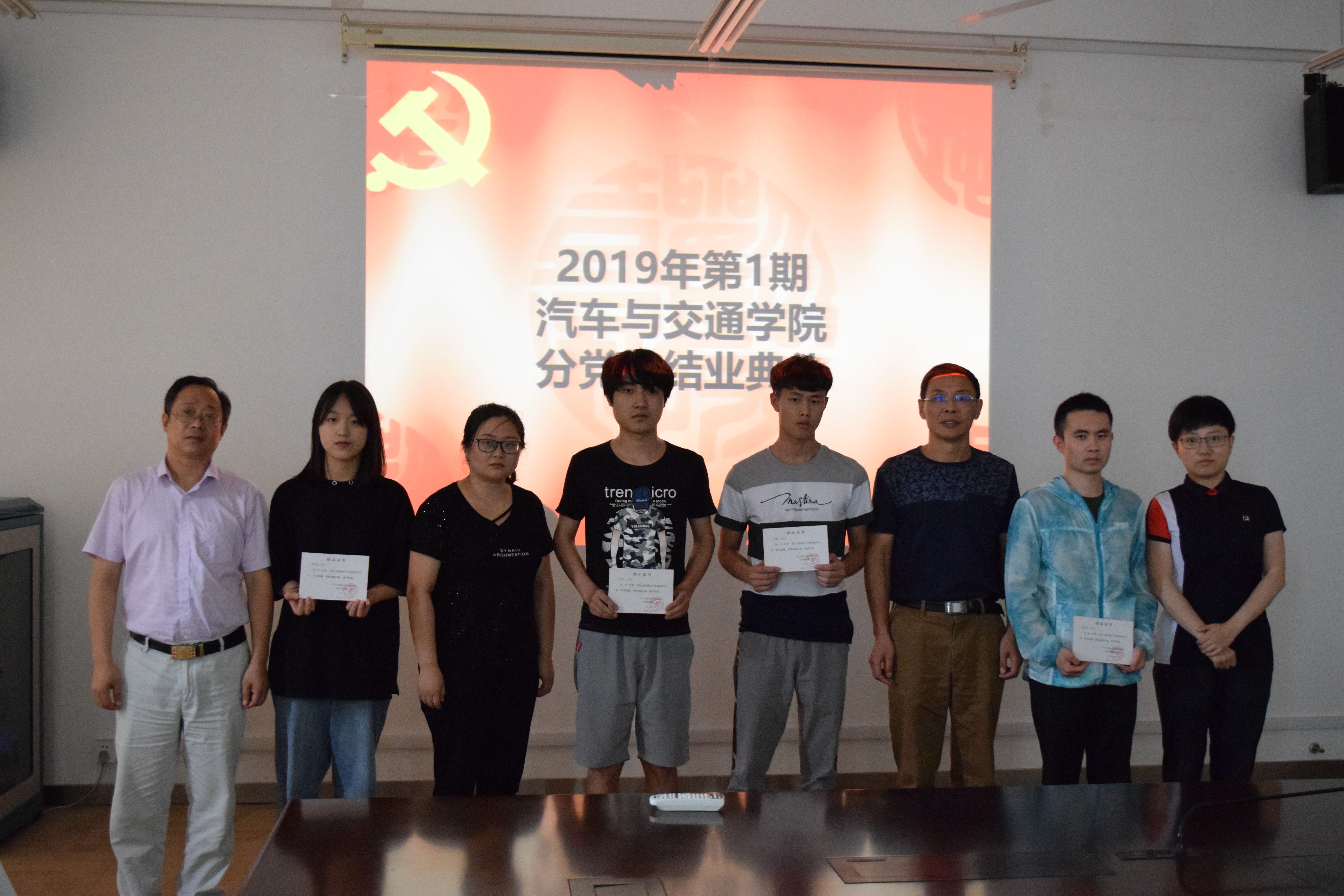 7月3日下午,汽车与交通学院在国交205会议室举行了2019年第1期分党校结业典礼,汽车与交通学院党总支书记郭再泉老师、汽车与交通学院学生党支部宣传委员徐海楠老师,汽车与交通学院学生党支部组织委员高娜娜老师以及全体学员出席了结业典礼。结业典礼由丁正荣老师主持。