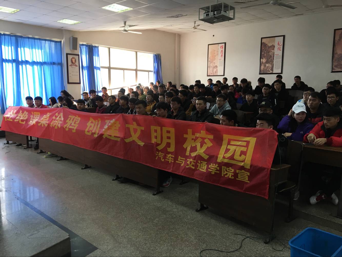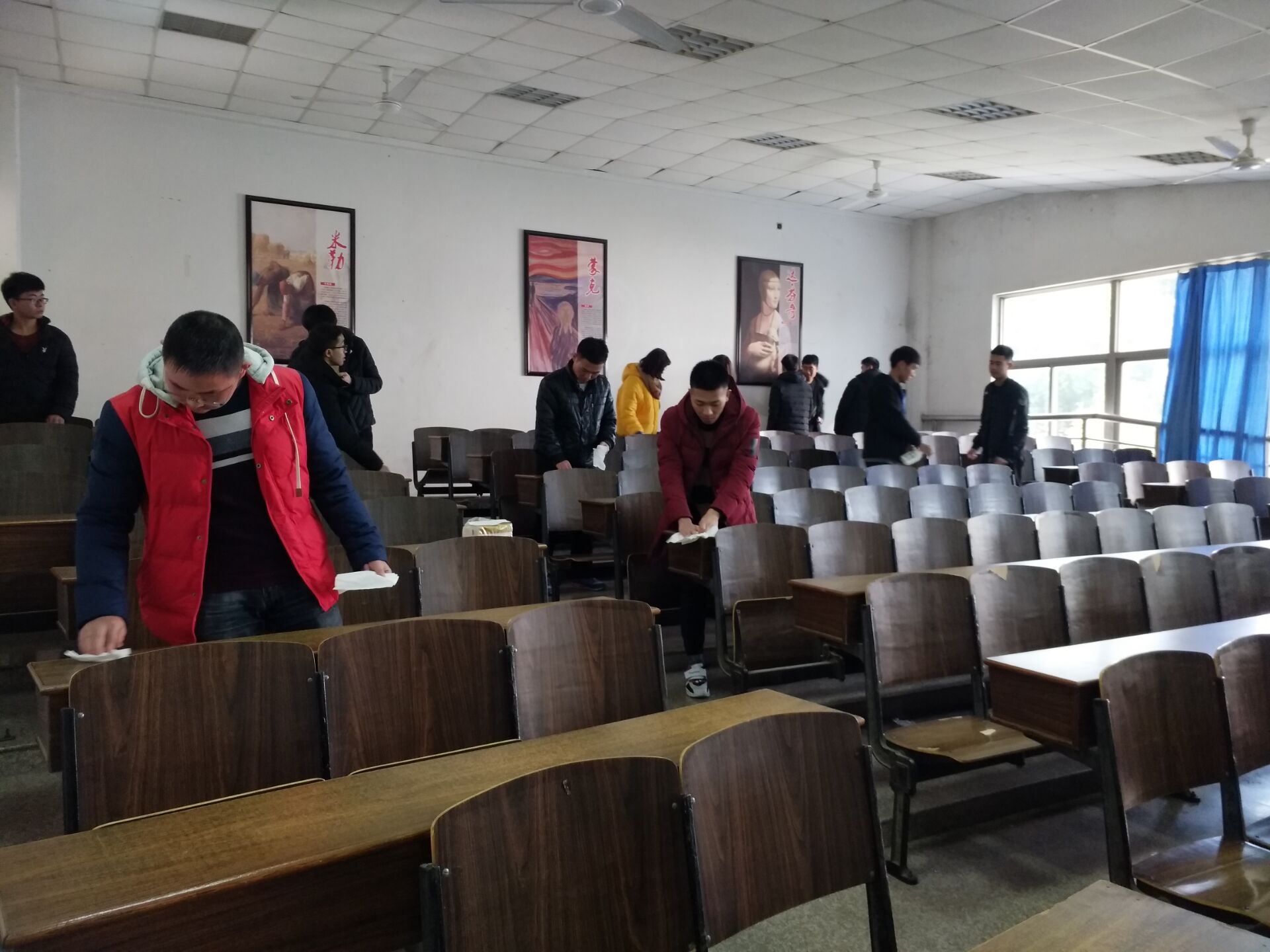 12月12日下午2:00,汽车与交通学院分党校组织学生会党团部和全体入党积极分子培训班学员开展了“杜绝课桌涂鸦,创建文明校园”为主题志愿服务活动。