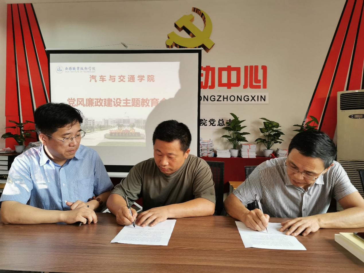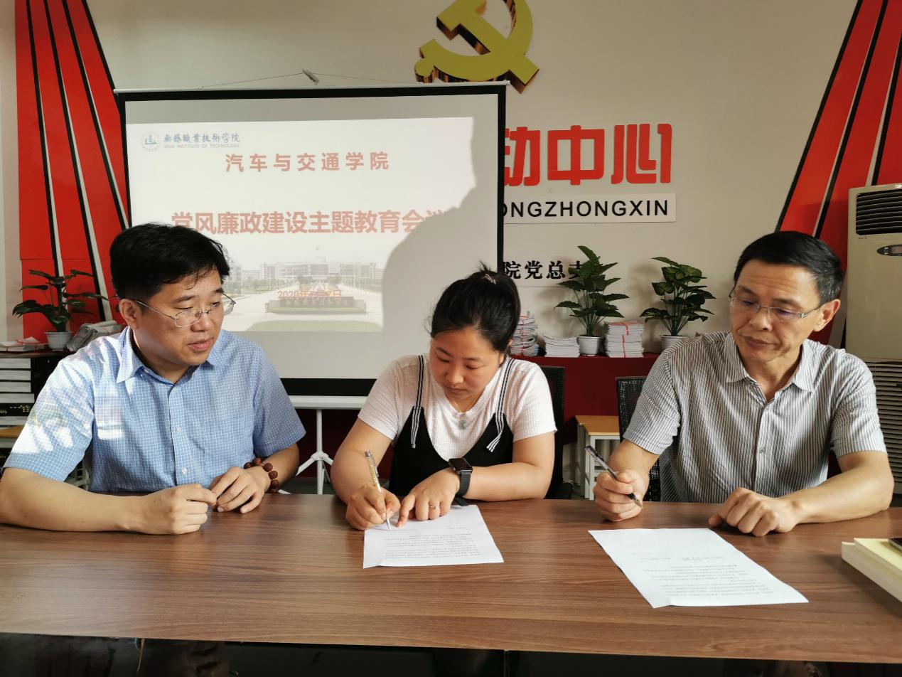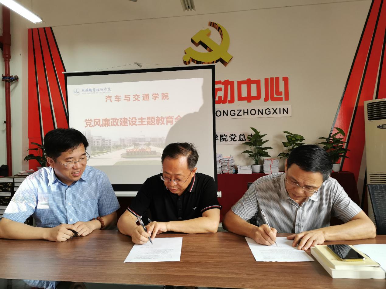会上,郭书记组织大家学习了习近平关于全面从严治党有关讲话精神,学校纪委办监察处编著的《高校违纪违规违法案例汇编》部分现实案例和《无锡职业技术学院师德失范行为处理办法》等文件。党总支纪检委员张美娟副院长介绍了自己的工作职责,传达了学校纪委委员会议精神,强调要严格把控风险点,加强党风廉政建设,提升教师师德师风及分院党风廉政建设水平。分院副院长邹晔传达了学校《坚持“严”的主基调,发扬“实”的好作风——2020年全面从严治党工作会议》精神,针对当前教育系统和汽车学院教师队伍中共20个党风廉政风险点进行分析、解读和警示,并提出了下一阶段学院党风廉政建设的具体要求。 分院领导和系部两办负责人签订了党风廉政建设责任书。