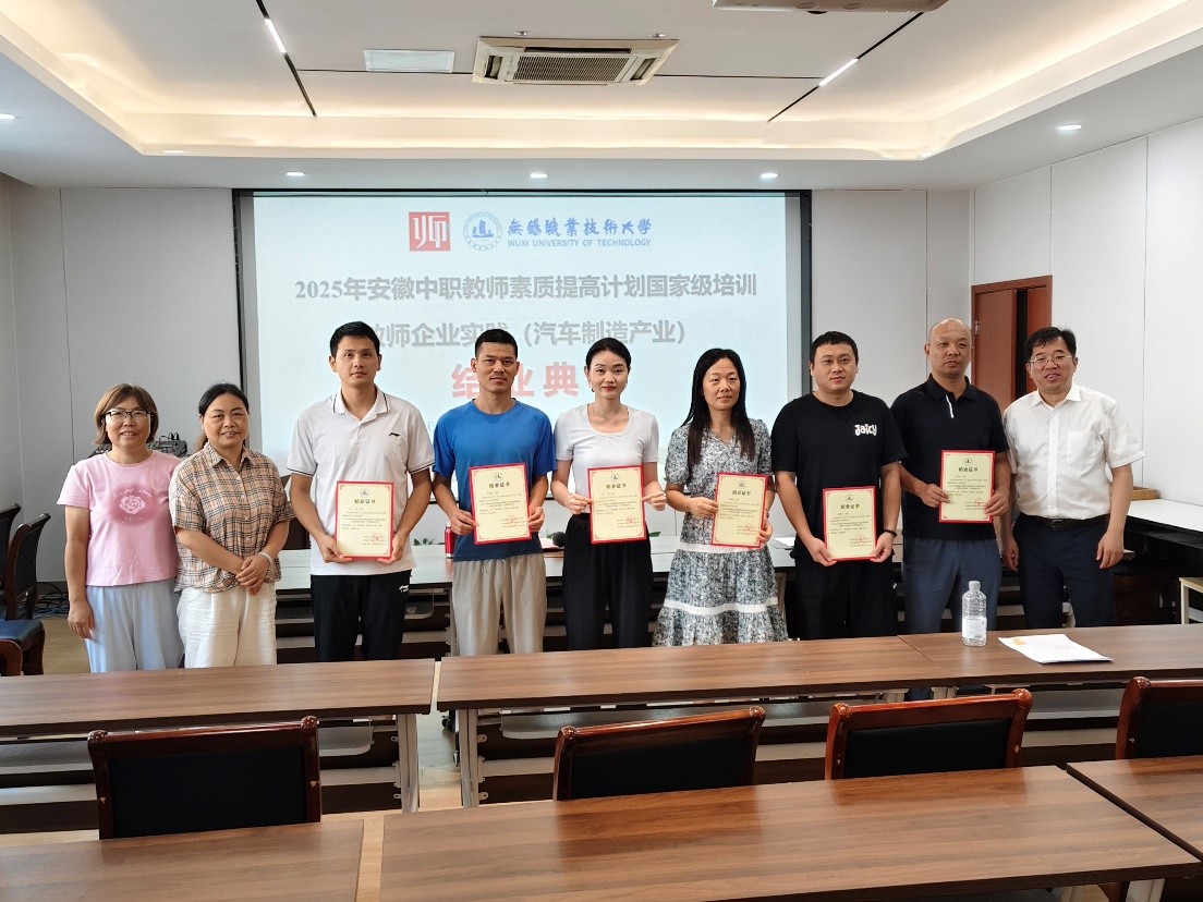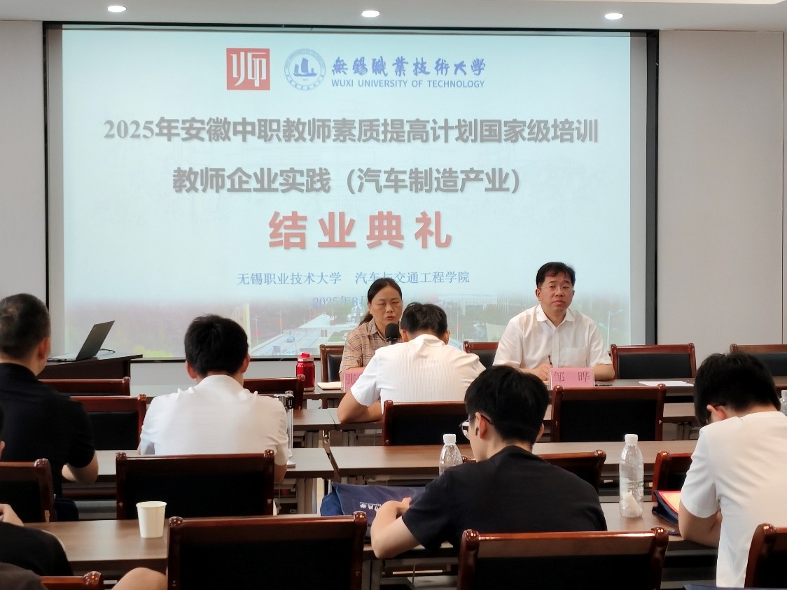 8月25日,“2025年安徽省职业院校教师素质提高计划国家级培训-教师企业实践(汽车制造产业)”培训班结业典礼在汽车学院206培训室举行。汽车与交通工程学院党政负责人、项目负责人与全体参训学员共同出席典礼。本次仪式由汽车学院党总支书记张美娟主持。