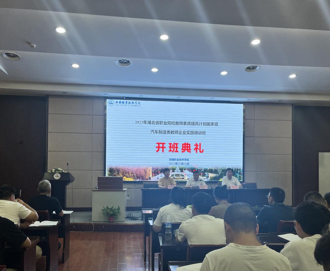7月16日上午,无锡职业技术学院汽车与交通学院承办的“2023年湖北省职业院校教师素质提高计划国家级培训教师企业实践(汽车制造类)”培训班在国际交流中心第二报告厅顺利召开。无锡职业技术学院教务处处长胡俊平、无锡职业技术学院继续教育学院副院长曹冬美、无锡职业技术学院汽车与交通学院院长邹晔出席了开班仪式。