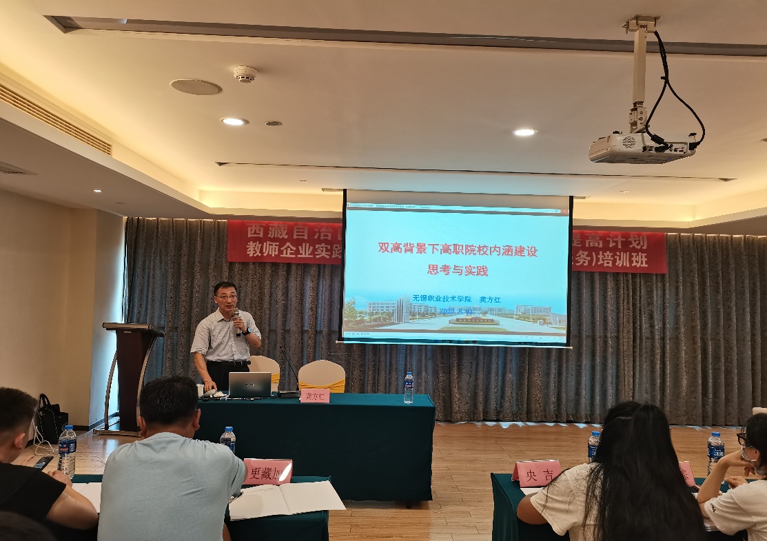 8月1日上午,西藏自治区2021年度职业院校素质提高计划教师企业实践(汽车维修、电子商务、家政服务)培训项目开班典礼在无锡江南四季酒店顺利举行。我校龚方红校长、汽车与交通学院邹晔院长、管理学院俞林院长、郑爱翔副院长、外语与旅游学院郭再泉书记、冯臻院长出席开班典礼。本次培训共有来自西藏自治区拉萨市第一中等职业技术学校、日喀则市职业技术学校、山南市职业技术学校、林芝市职业技术学校、昌都市职业技术学校、那曲市职业技术学校、阿里地区中等十几所职业院校的近50名老师参加。