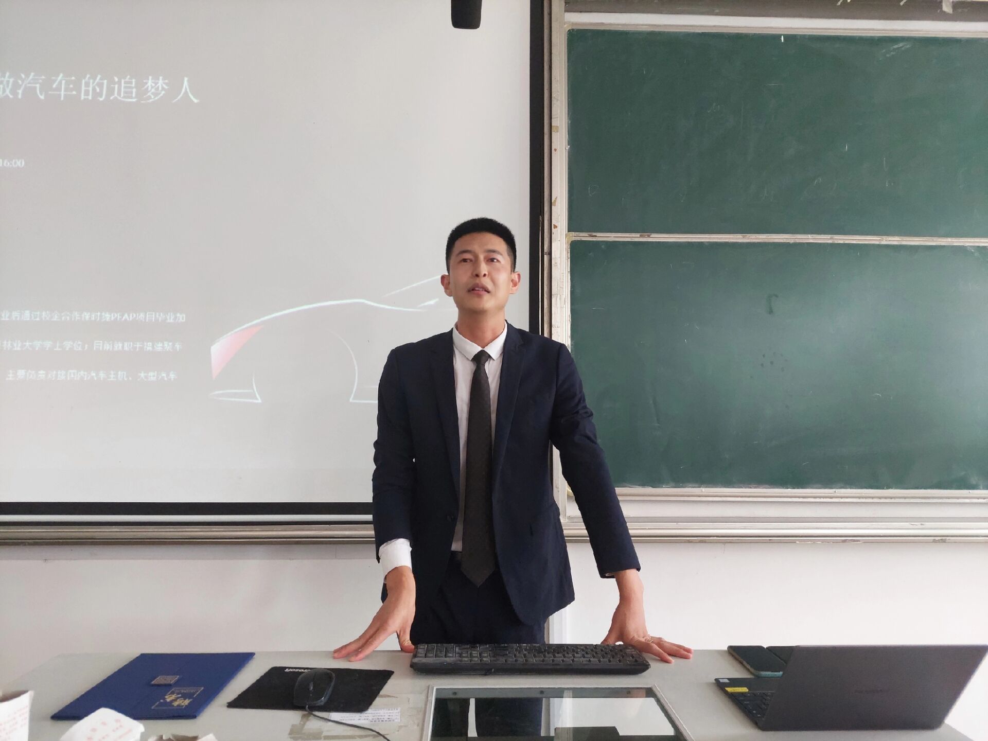 胡子豹,汽车保险51331班校友,毕业后通过校企合作保时捷PEAP项目加入南京保时捷中心;2018年获得南京林业大学学士学位;目前就职于福建聚车科技有限公司好车网,担任大客户经理,主要负责对接国内汽车主机厂、大型汽车集团公司的大客户业务工作。这次应汽车与交通学院邀请,返回母校为学弟学妹们传授了自己就业创业经历和经验教训。