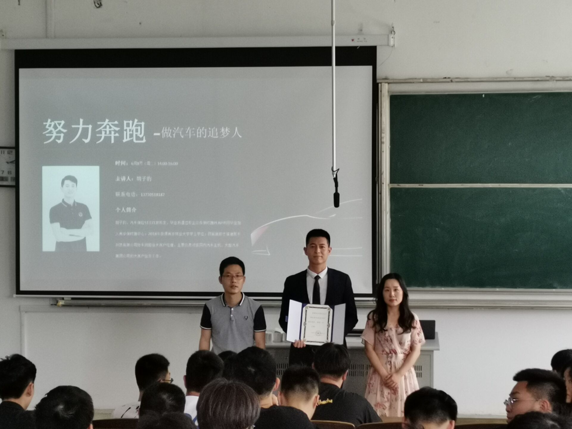 6月8号下午2点,一场名为《努力奔跑,做汽车的追梦人》的校友讲座在J9-102如期开讲了,主讲人正是无锡职业技术学院优秀校友--胡子豹。