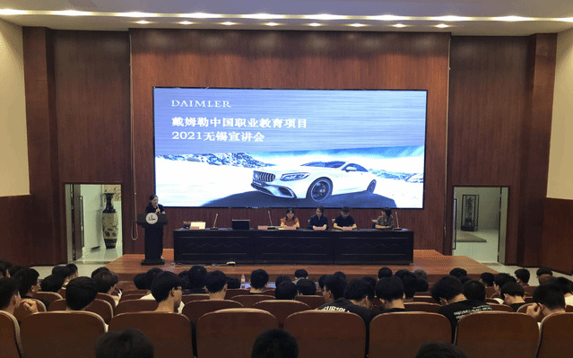 5月25日下午,“戴姆勒中国职业教育项目”2021年无锡宣讲会在我校国际交流中心一楼报告厅举行。经销商代表、汽车与交通学院校企合作项目负责人、项目教师和2020级汽车检测与维修技术及汽车技术服务与营销专业的全体学生参加了宣讲会。本次宣讲会旨在通过戴姆勒奔驰汽车售后服务市场人才需求宣讲,吸引更多优秀同学积极加入到本项目中去。
