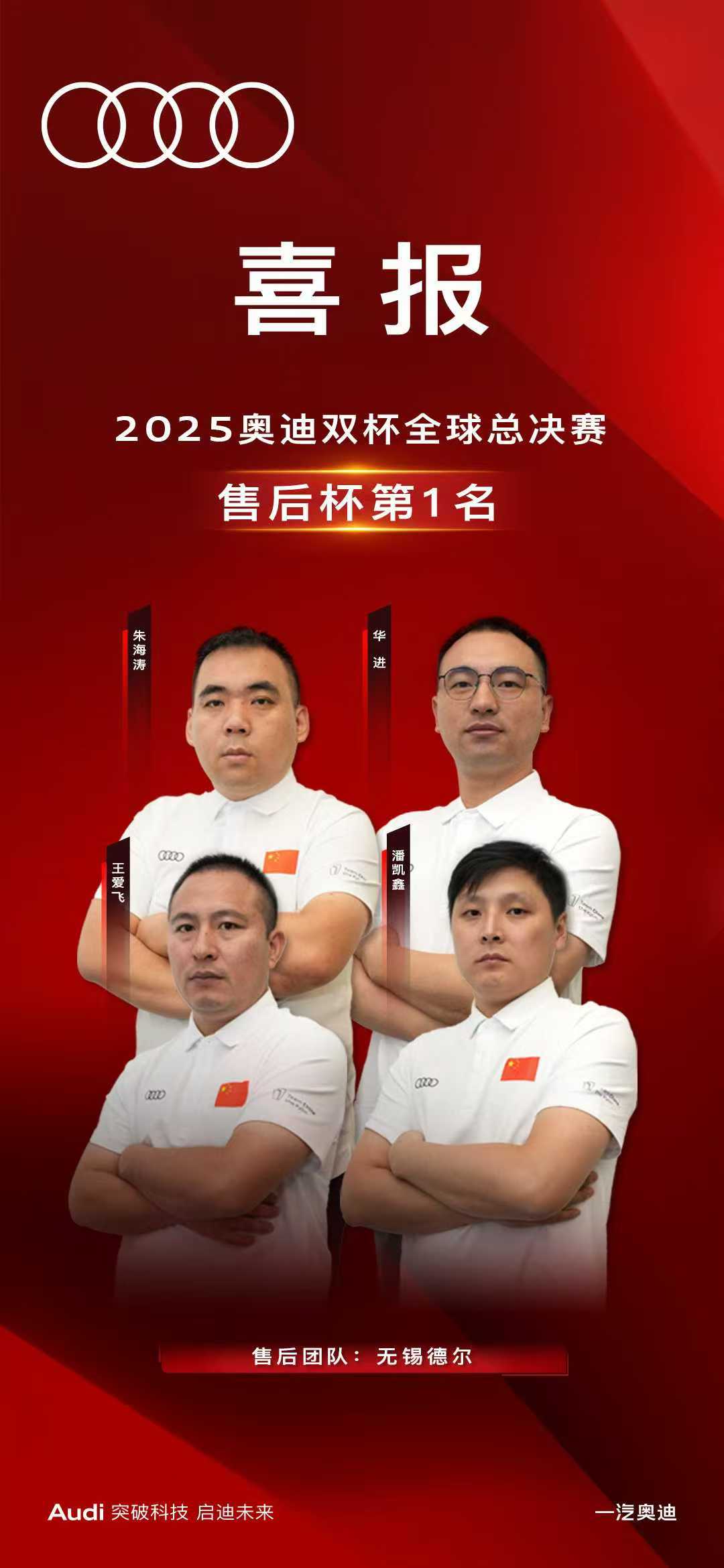 汽车学院汽修50731班校友朱海涛,带领团队在2025奥迪专业双杯竞赛(Audi Professional Twin-Cup)全球总决赛中勇夺售后杯冠军。这一赛事作为全球汽车售后服务领域的权威比拼,汇聚了17个国家的顶尖团队同台竞技,是行业专业实力的重要体现。