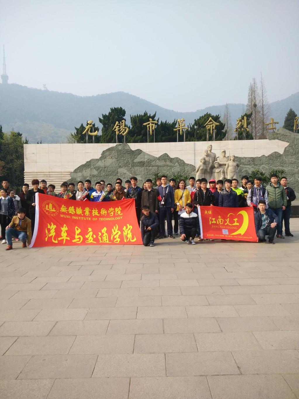 为了牢记历史,缅怀革命先烈,学习人民英雄的先进事迹,增强学生的使命感,做一个有为的社会主义青年,327日,由江南义工和无锡职业技术学院汽车与交通学院的同学们携手共同开展了以“缅怀先烈,做有为青年”为主题的无锡烈士陵园扫墓仪式活动。汽车与交通学院学生会主席刘焱,副主席韩运华,红十字会会长郭婧婷带领无锡职业技术学院汽车与交通学院的同学们参加了这次活动。