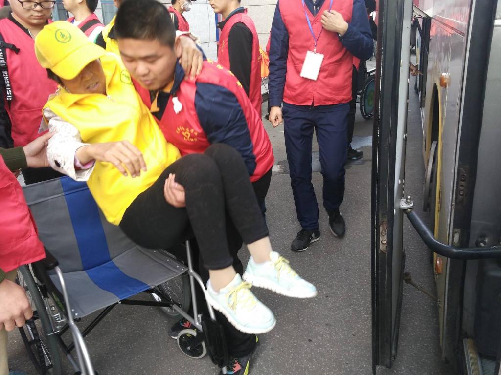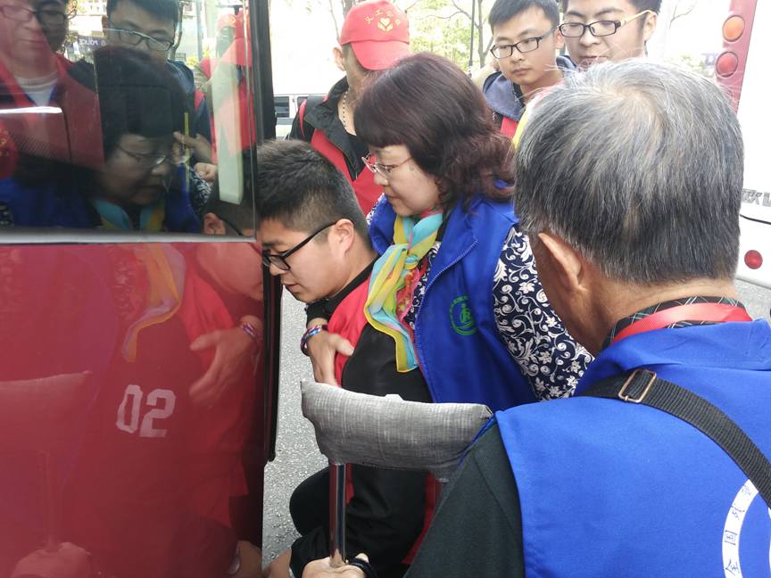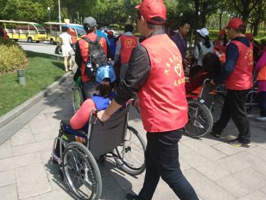 清晨6点,志愿者们怀着饱满的激情、满满的爱心在校门口集合出发。志愿者们身穿雨衣在极为恶劣的天气条件下,不畏艰难、勇往直前与来自全国各地的残疾人进行了爱心助游志愿服务。本次志愿活动整整持续了2天,活动第一天虽然下着暴雨却并没有影响到志愿者的热情,我分院志愿者宋佳成同学为了找回来自四川阿坝自治州残友丢失的背包而淋湿了全身,充分体现作为一名志愿者所该拥有的敬业精神。在前往灵山大佛旅游境地时,有一位来自河北石家庄残友的张长信,为了想近距离的接触和观赏大佛,在志愿者的服务和鼓励下,拖着残缺的身体、迈着艰难的手伐,成功地爬入大佛的面前。整个艰难的过程也让志愿者们看到了残友的身残志坚的精神。活动的第二天,残友们即将离开无锡,志愿者们积极地来到酒店帮助残友们收拾行李,送往汽车客运站。其中最令志愿者们感动的是一位来自江西省的美丽残疾人代表为我们志愿者们朗诵了一首她的原创诗:“我不知道你们的名字,但我知道你们共同的名字---志愿者;我不记得你们的模样,但我记得你们的笑容与温暖”。字字温暖,句句感人,在场的志愿者们无不流下感动的热泪。