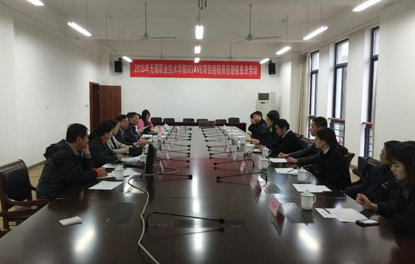 11月18日,我校中德职业教育汽车机电合作项目(SGAVE项目)2015年经销商信息日活动在国际交流中心205会议室举行。来自苏锡常地区的奔驰、奥迪、保时捷、大众和宝马五大品牌的11家经销商代表来校遴选人才。