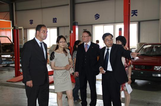 我院副院长冯渊、汽车系主任沈明南、副主任吕玫等陪同客人考察了汽车系的教学和实验实训场地,随后在国际交流中心207与客人进行了交流。冯渊副院长简单介绍了我院及汽车系概况,并就汽车系毕业生去向、今后发展方向、与企业合作领域等回答了客人的提问。 在双方交流过程中,Peter Porbeck博士对我院的成绩和设施给予了肯定,并表示希望强强合作能给双方都带来好处。