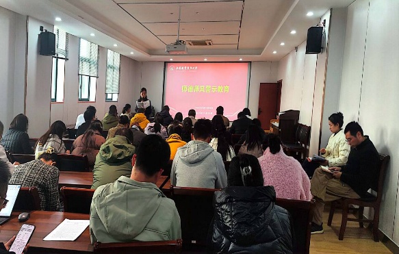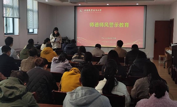 学院办公室主任钱燕领学了“中共中央 国务院关于全面深化新时代教师队伍建设改革的意见(中发〔2018〕4号)”和“江苏省高校教师师德失范行为处理实施细则(苏教规〔2019〕1号)”等文件,学院副院长游专宣读了师德师风警示教育典型案例汇编中的警示案例,最后全体教职工集中观看了“清廉中国”和优秀教师——雅安职业技术学院胡月刚的视频。