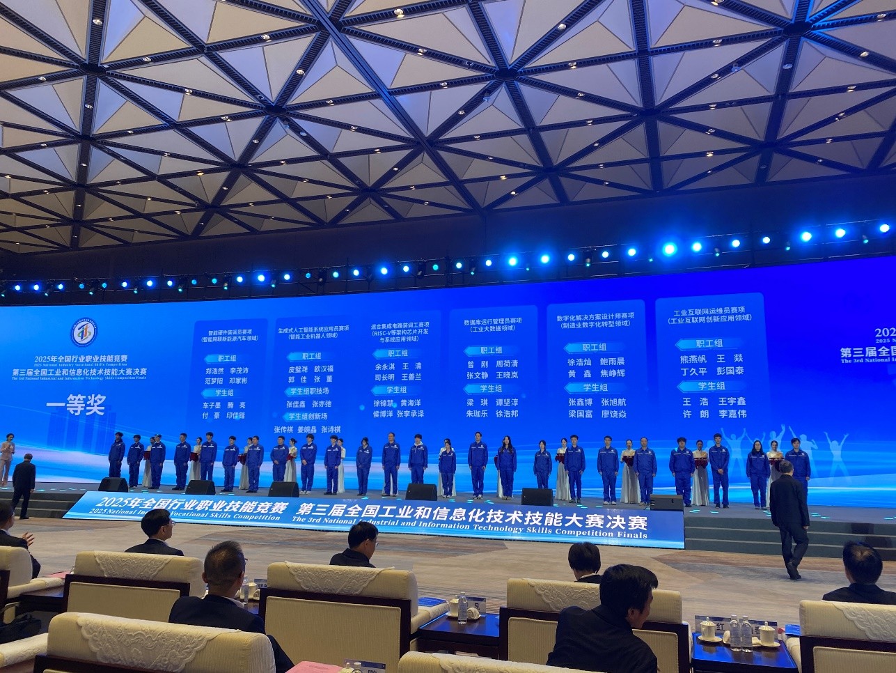 全国工业和信息化技术技能大赛是工信领域唯一的国家一类赛事,自2021年创办以来已成为发现人才的“试金石”、锤炼实战能力的“练兵场”和促进产才融合的“加速器”。大赛积极拓展新领域、新场景,如智能工业机器人、智能网联新能源汽车赛项,聚焦人工智能等数字技术,助力制造业优化转型,按照场景化、图谱化应对数字化转型的要求,强化创新型技术技能人才的选拔与培养。