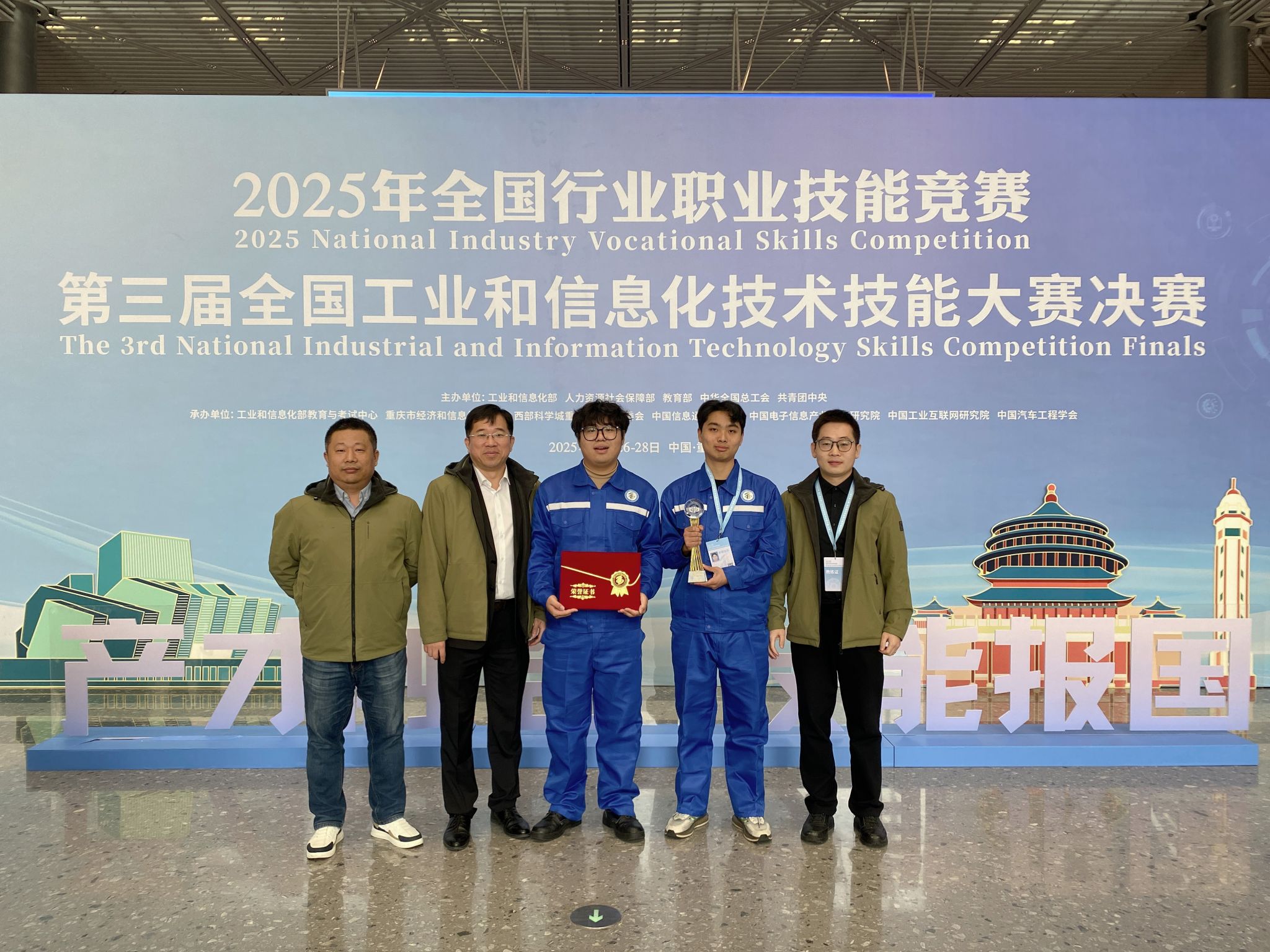 11月26日至28日,由工业和信息化部、人力资源社会保障部、教育部等五部门联合主办的第三届全国工业和信息化技术技能大赛决赛在重庆举行。我校汽车与交通工程学院张鹏博老师指导的付豪(创新班)与印佳锴(汽车制造与试验专业)在智能硬件装调员(智能网联新能源汽车)赛项中获得一等奖,取得历史性突破。