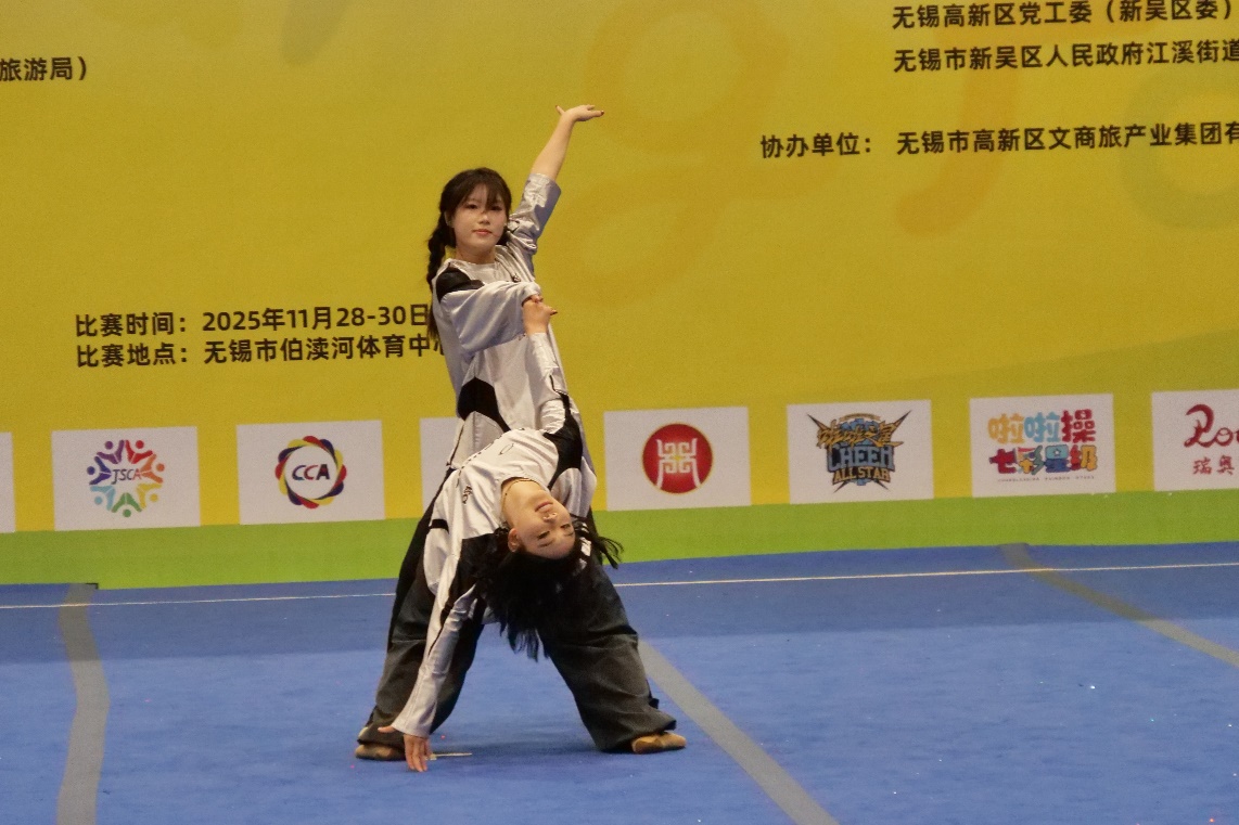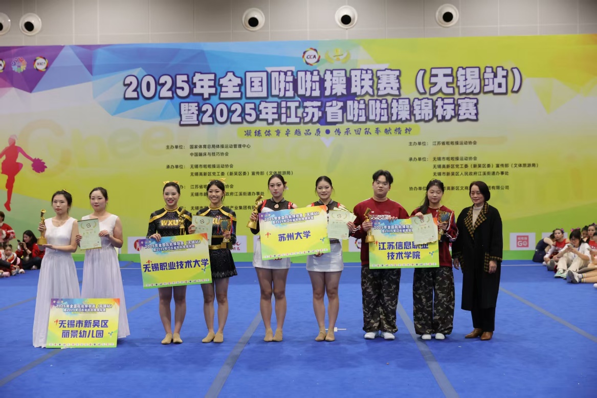 本次赛事由国家体育总局体操运动管理中心、中国蹦床与技巧协会主办,江苏省啦啦操运动协会、无锡市啦啦操运动协会承办,吸引了来自全国各地的114支代表队、2000余名运动员同台竞技,全方位展现了啦啦操运动的青春魅力与竞技风采。赛场上,我校啦啦操队员们身着统一服装,伴随着动感十足的音乐,通过精准有力的动作、整齐划一的队形展现出默契的团队协作,生动诠释了锡职大学子“青春激昂、团结奋进”的精神风貌。