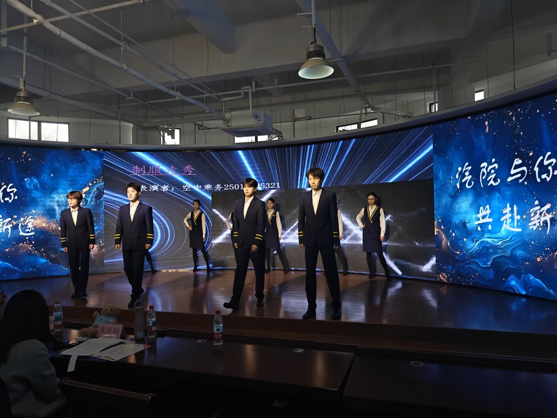 活动在活力四射的开场舞中拉开序幕。随后,歌曲演唱、钢琴独奏、制服走秀、舞蹈串烧等节目轮番登场,或深情动人,或飒爽灵动,充分展现了新生的多才多艺与青春风采。中场互动环节中,幸运抽奖率先点燃现场气氛;紧接着的有奖竞答环节,设置了汽车专业知识竞答、党史知识互动,在场学生积极抢答,在趣味互动中拉近了彼此距离;互动游戏“你画我猜”激发创意碰撞,“数字炸弹”牵动紧张心跳,台上台下笑声与掌声不断,汇聚成洋溢青春热情的欢乐乐章。
