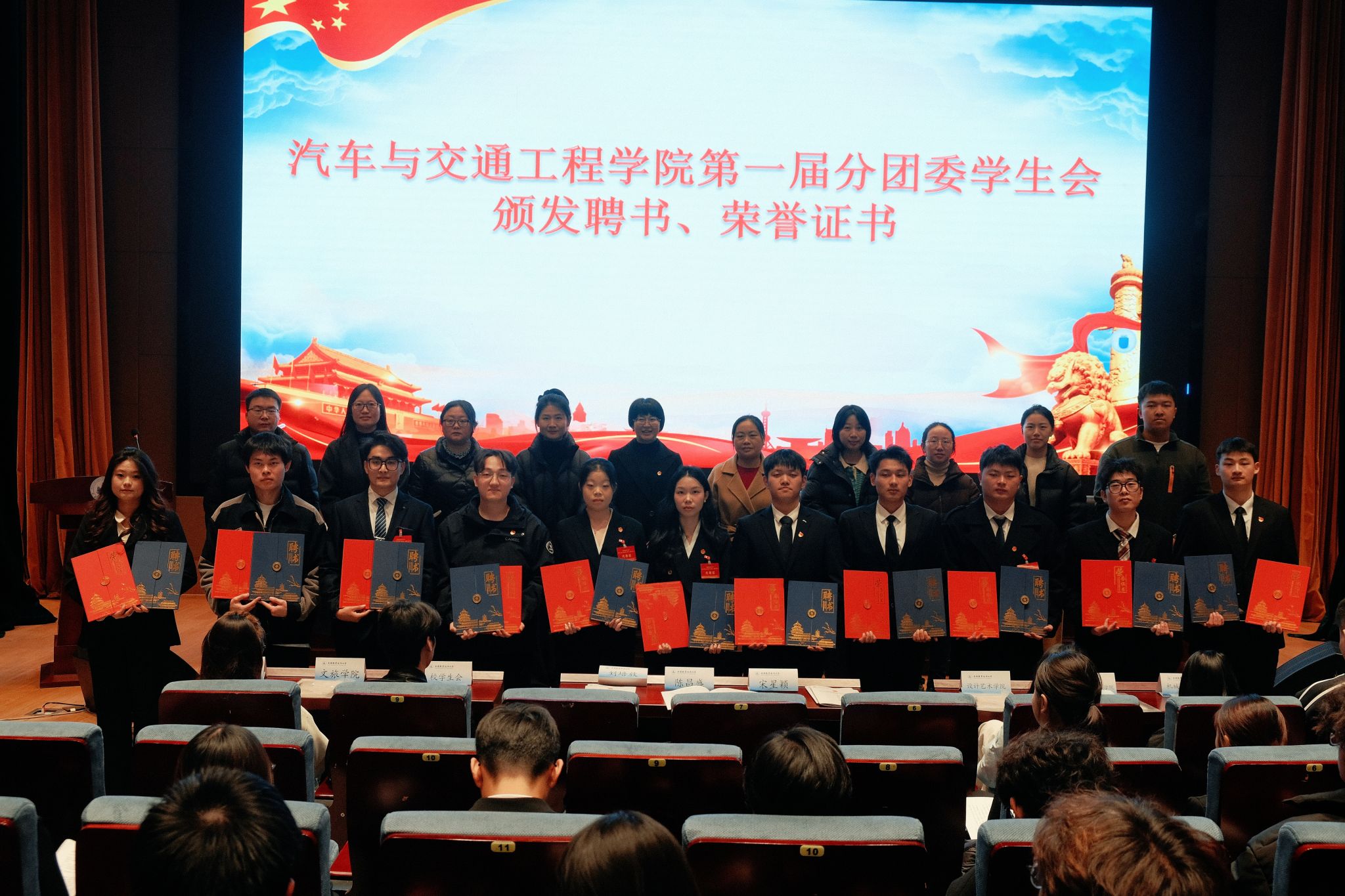 大会在庄严的国歌声中拉开帷幕,汽车与交通工程学院团总支书记林姣姣致开幕词,并宣布大会正式开始。校团委书记郑月圆对大会召开表示热烈祝贺,她对学院过去一年的团学工作成绩给予充分肯定,并鼓励学生干部勇立潮头,在全校团学工作中发挥表率作用。学院党总支书记张美娟在讲话中对学院团学工作表示认可,寄语团学干部加强理论学习、锤炼过硬本领、提升品德修养,以奋发进取的精神面貌,不断推动学院团学工作迈向新台阶。随后,与会领导老师为无锡职业技术学院汽车与交通工程学院第一届分团委、学生会成员颁发聘书与荣誉证书,表彰他们过去一年的辛勤付出,并合影留念。