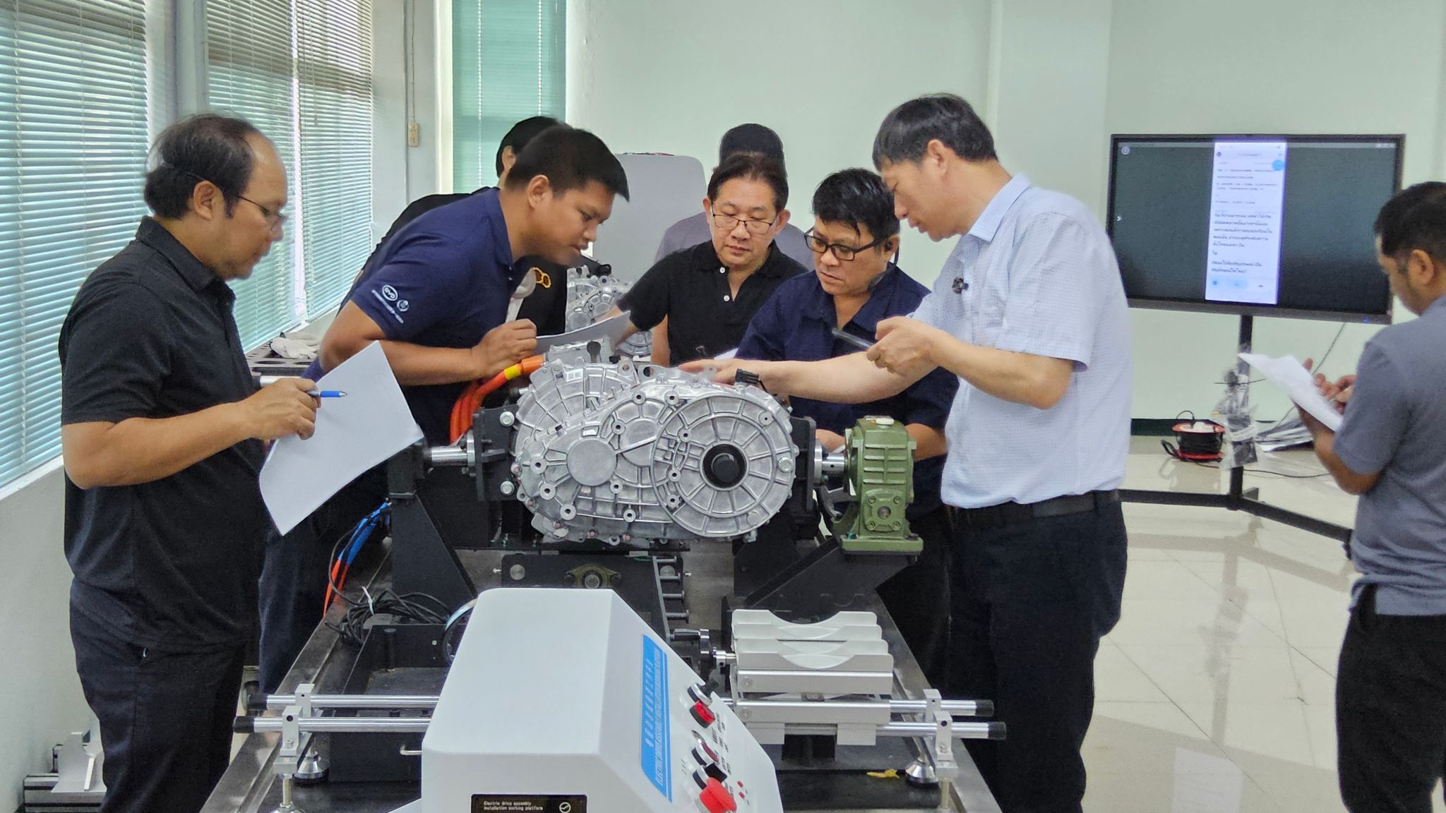 本次出访以“推动中国职业教育标准国际化、搭建中泰产教融合平台”为核心目标,重点推进中国交通运输部职业资格中心新能源汽车检测与维修专业能力证书评价考评体系在泰国的引入工作。出访期间,我校汽车学院教师李志军为泰国素万纳普皇家理工大学相关师生提供专业技术指导,系统讲解该考评体系的核心内容、考评标准及操作流程,并开展考评员与师资专项培训,帮助当地师资熟练掌握相关专业技能与考评方法,为该证书体系在泰国的落地应用筑牢人才根基,助力中国职业教育标准实现国际化输出。